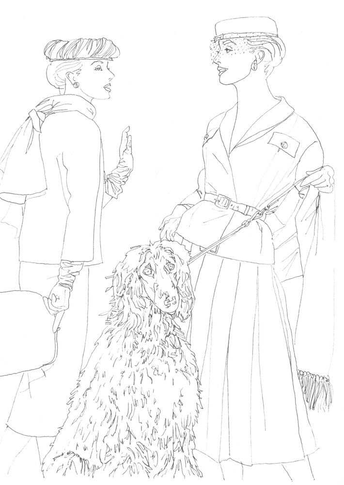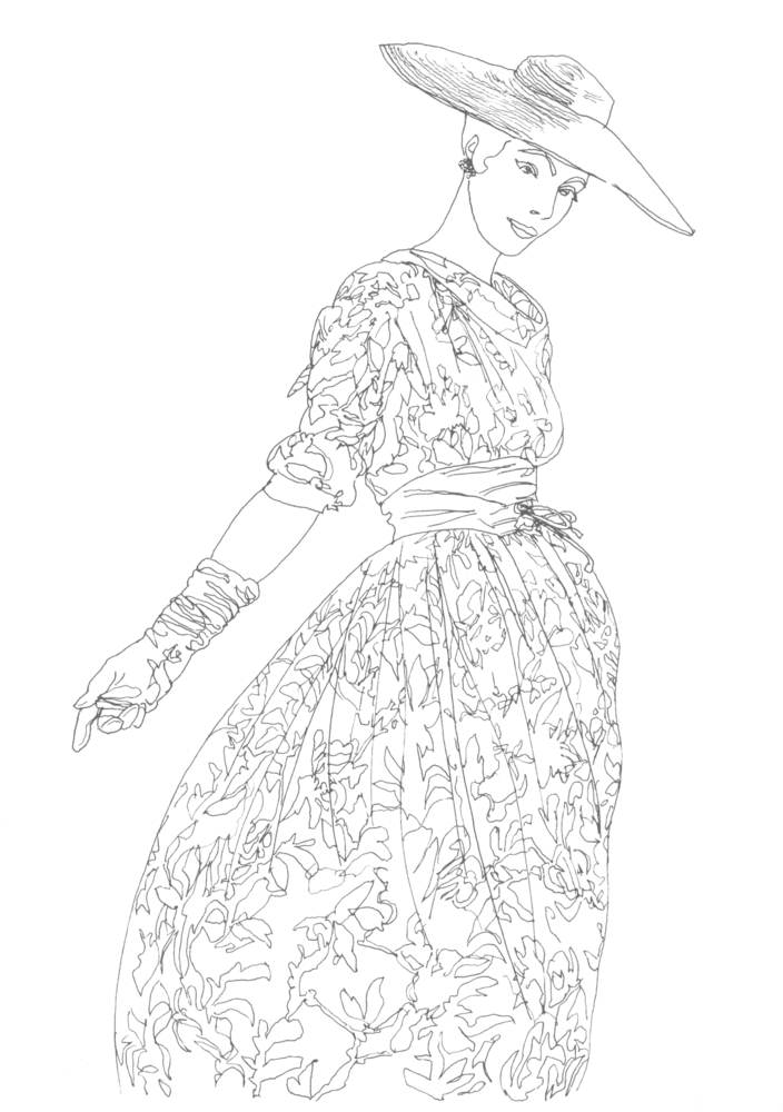 Вдохновением для нарисованных от руки маленьких произведений искусства стали канонические фотографии из британского Vogue 1950-х годов. Эпоха шляпок и перчаток в тон, силуэтов «песочные часы» продолжает вдохновлять современных дизайнеров, таких как Miuccia Prada, Dolce & Gabbana и Raf Simons.
