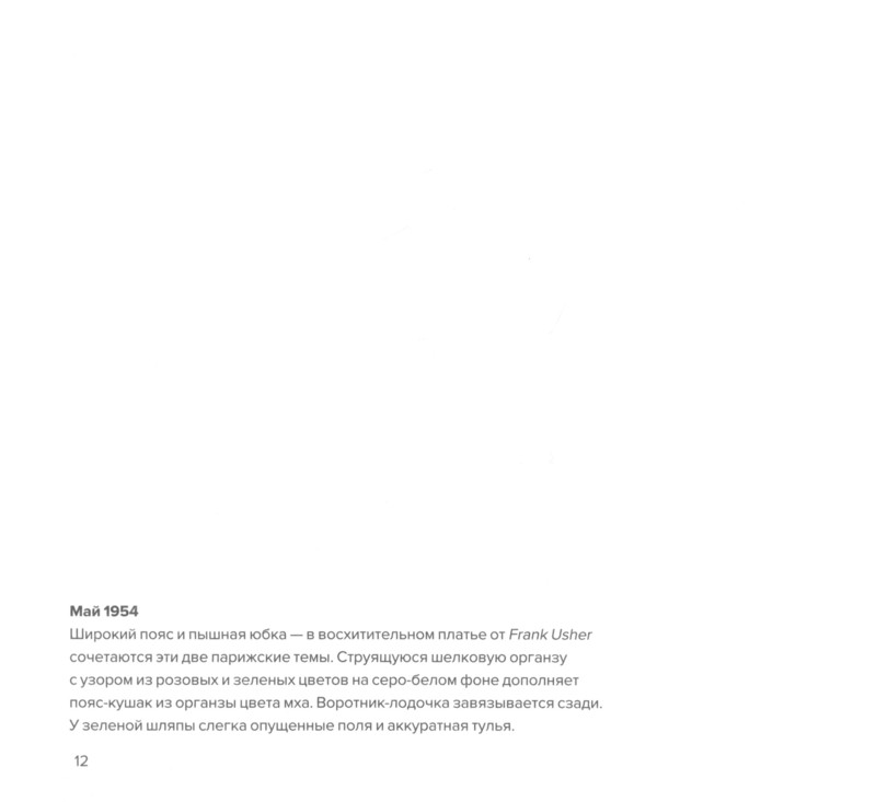 Вы найдете здесь роскошные бальные платья и изящные платья для коктейля, модные костюмы и эффектные аксессуары от таких известных домов моды, как Christian Dior, Balenciaga, Givenchy и Chanel. Текст, сопровождающий иллюстрации, взят из оригинальных выпусков Vogue, и сегодня он кажется невероятно поэтичным, буквально оживляя эти великолепные иллюстрации.