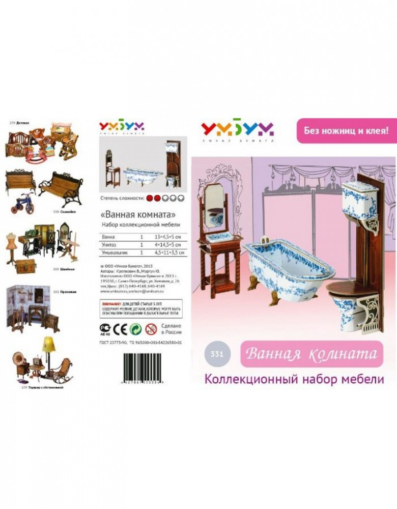 Возможно, есть люди, которые подобные вещи коллекционируют. Я купила как игрушки для внучки. Собирал папа, для ребёнка сложно. После сборки смотрится очень красиво, картон прочный. Но умывальник и унитаз очень неустойчивы. Проблему решили при помощи пластилина - утяжелили низ, центр тяжести сместился, теперь не падают, куклам можно спокойно пользоваться.