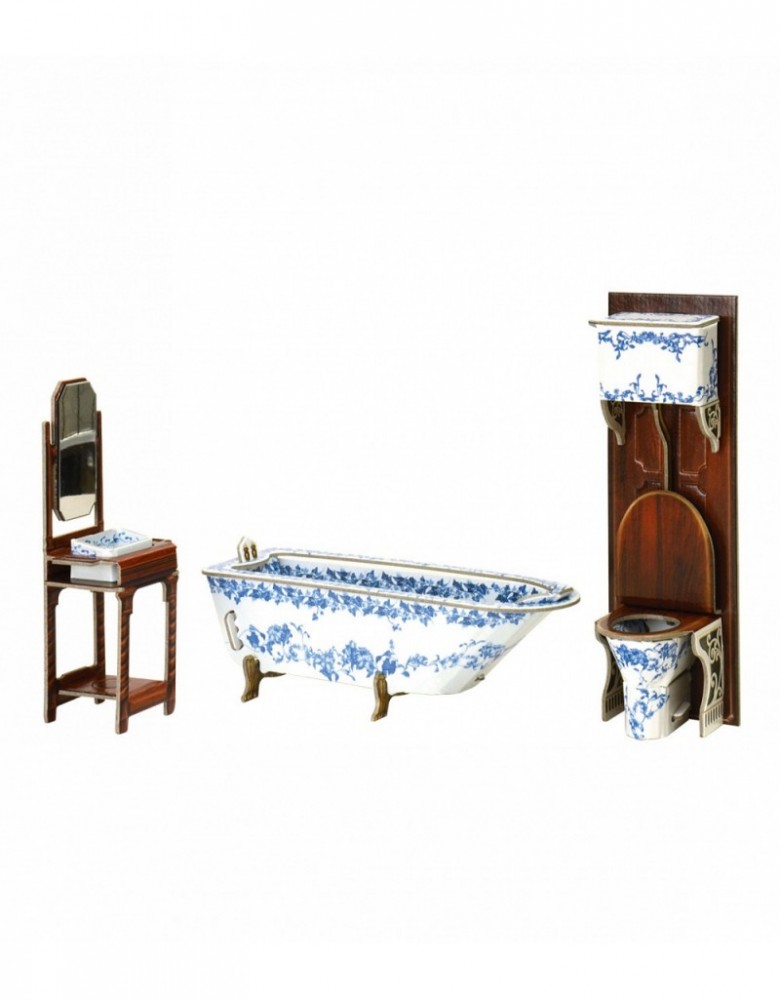 Умная бумага Коллекционный набор мебели «Ванная комната»В данный момент этот товар отсутствует в продаже. Возможно, у нас найдется аналогичный или похожий товар здесь. Серия: Коллекция Привлекательный внешне и довольно необычный набор для оформления ванной комнаты. Элементы выполнены в винтажном стиле, фаянсовые части расписаны голубыми цветами, что можно было встретить в подобных комплектах, изготовленных в Британской империи викторианской эпохи. Комплект включает три элемента: ванну, унитаз и рукомойник с зеркалом на деревянных резных ножках. Унитаз имеет традиционное верхнее расположение сливного бачка. В бачке показан сливной механизм, к рычагу которого можно при желании прикрепить шнурок или тонкую цепочку (они в комплект не входят). Полированная деревянная крышка сиденья поднимается. |