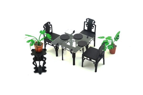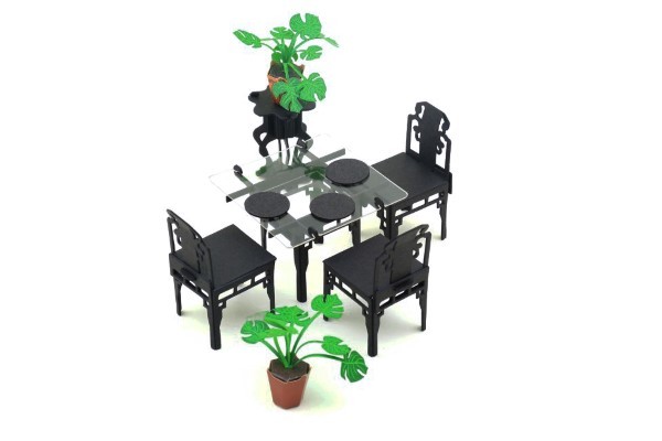 Серия: Коллекция Особую привлекательность придает этому набору прозрачный верх чайного столика, который контрастирует с остальными деталями, выполненными из прочного черного картона. Присутствуют в наборе и несколько стульев. Дополнительно есть два цветочных горшка с зеленью. Яркие зеленые листья украсят и оживят вашу чайную комнату. Набор включает детали, выполненные из картона различной толщины, а также из высококачественной дизайнерской бумаги. |