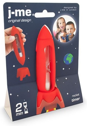 J-me Песочные часы «Rocket Timer»В данный момент этот товар отсутствует в продаже. Возможно, у нас найдется аналогичный или похожий товар здесь. Оригинальные песочные часы в виде ракеты созданы специально для детей, чтобы приучать их к чистке зубов в игровой форме. Песок сыпется ровно 2 минуты, за это время малыши должны успеть выполнить гигиеническую процедуру. Колба в силиконовом чехле защищена от повреждений при случайном падении. Чтобы начать отсчет времени, нужно вытащить корпус «ракеты» из поддона и перевернуть его. Модель удобно хранить полочке или раковине, подставка на трех ножках не скользит по любой поверхности. |