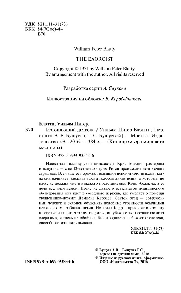 Читал давно (в прошлом веке ) из серий "Библиотека остросюжетной мистики". Довольно жуткая вещь. Есть продолжение этой темы "Легион" в той же серий.