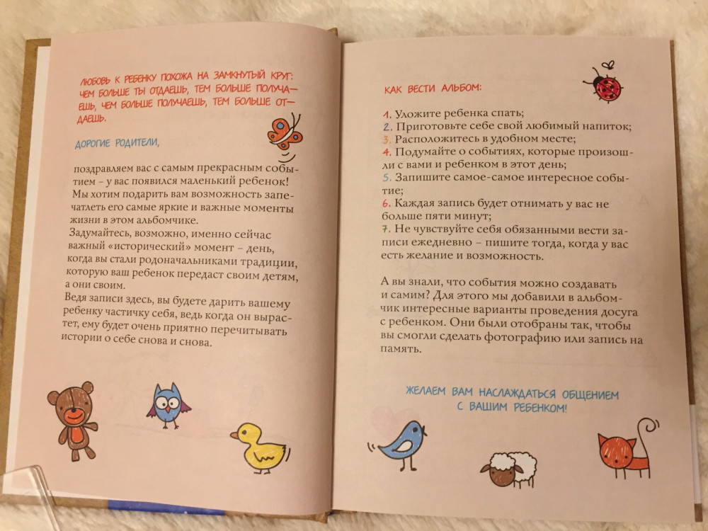 Мимишный блокнот! Я купила поздновато, моей дочке уже 2 года! Но записывать каждые ее "смешные моменты" удобно. Один минус слишком маленькая, думаю, в большом формате была бы лучше, чтобы можно было бы фото вклеивать, как и написано в описании. А так, получается только маленькие фото подойдут. Тому, кто любит красивые блокноты- понравится =)