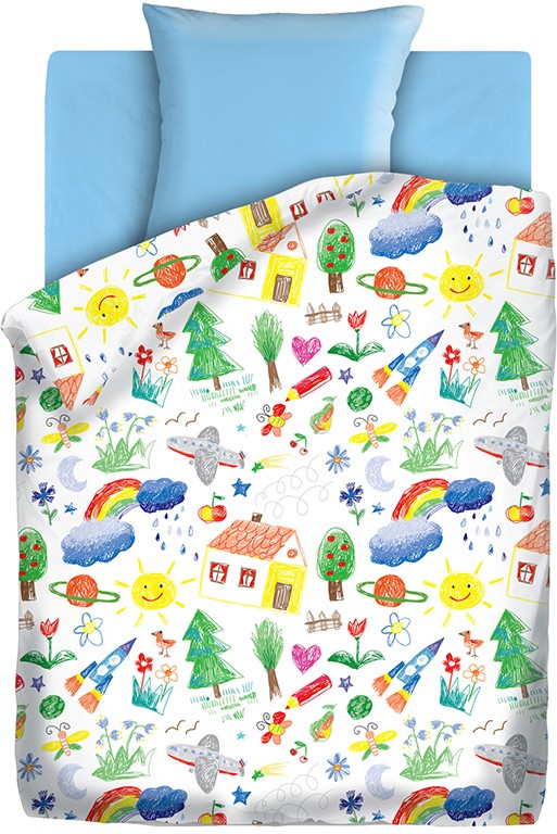 Немного расстроило, что наволочка пришла не голубая, как на картинке, а тоже с рисунками; бязь тонкая, но качество хорошее. В целом, покупкой осталась довольна.