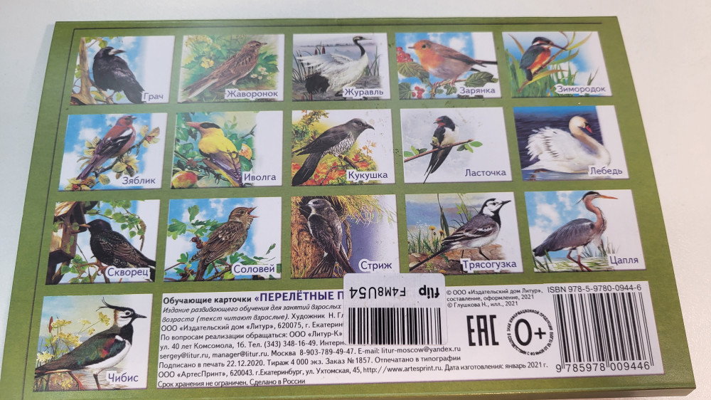 Перелетные птицы России+44 плотный картон красочные картинки размер карточек развитие кругозора