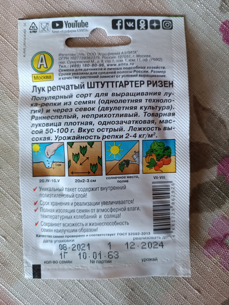 💳 Оплатить за товар можно при получении 🇰🇿 Есть бесплатная доставка по Казахстану от 1 дня 🎁 Копите бонусы с каждой покупки Серия: Лидер (Аэлита) Сорт среднеранний, рекомендован для потребления в свежем виде, переработки и хранения. Пригодный для возделывания лука-севка. Луковицы крупные, плотные, слабо или среднеприплюснутые. Окраска наружных чешуй соломенно-жёлтая. Масса луковицы достигает 90-160 г. |
