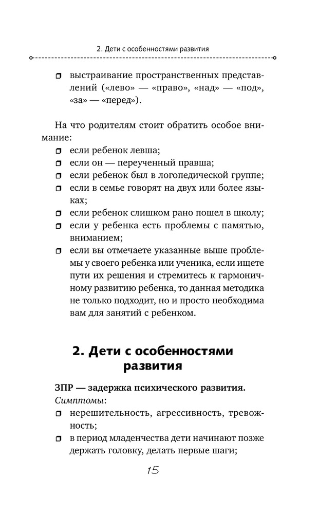 Здравствуйте! Книга очень хорошая. Интересные задания для развития всех психических процессов ребенка: внимания, памяти, мышления, речи и т. д. В начале, действительно, дается описание диагнозов, которые часто ставят ребенку, например, СДВГ, ММД, ОНР, Дизартрия..., но их описание дается не медицинскими терминами, а в простой форме, доступной каждому родителю. Написано, к каким специалистам обратиться при том или ином диагнозе. Думаю, каждый заботливый родитель должен знать, какие проблемы у ребенка и как их вовремя устранить.