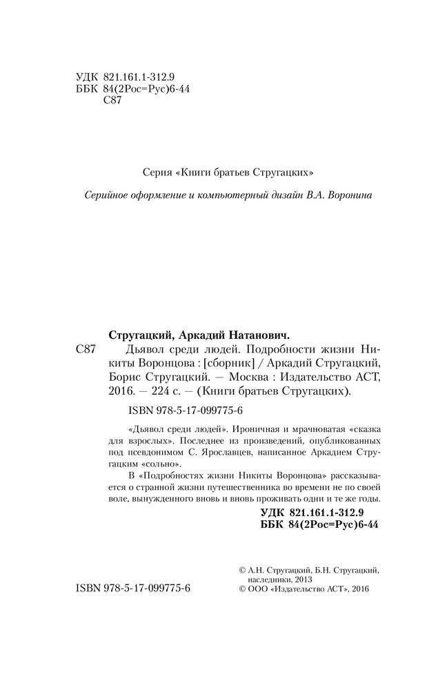 В данный момент этот товар отсутствует в продаже. Возможно, у нас найдется аналогичный или похожий товар здесь. «Дьявол среди людей». Ироничная и мрачноватая «сказка для взрослых». Последнее из произведений, опубликованных под псевдонимом С. Ярославцев, написанное Аркадием Стругацким «сольно».