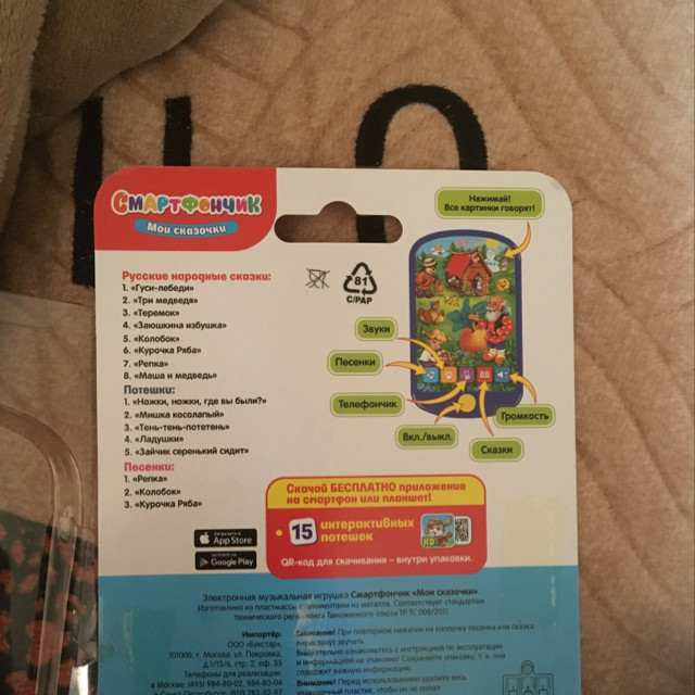 Отличная игрушка для детей. Все как в описании. Ребенок не просто играет с игрушечным телефоном, а слушает сказки и песенки. К вечеру уже выучили песню про репку. Теперь везде ее поем. Ребенку 3 года.
