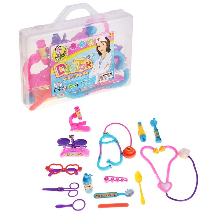 Не очень понравился. Из плюсов - большое количество предметов, которых нет в других наборах: весы, микроскоп. Из минусов: плохое качество, например, стетоскопов. Один из них даже не вставляется в уши как положено, весь перекручивается. Какой то, пузырек вообще непонятного назначения. В целом, яркий и многопредметный набор, но даже играть ребенку не интересно. Пользуется только весами, ложечкой, ножницами и микроскопом. Остальное забросила.