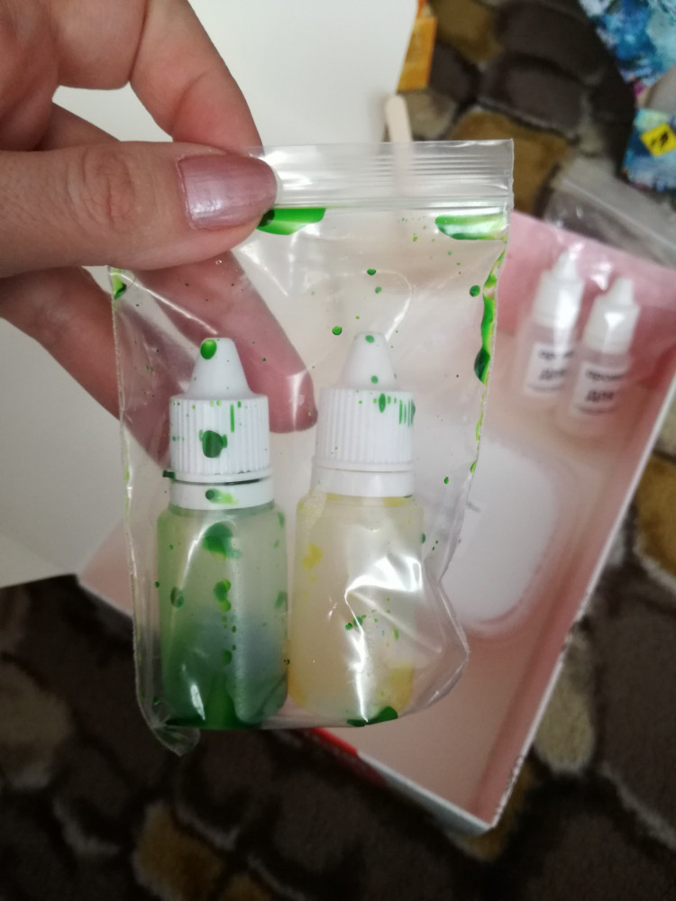 Вот такая красота получилась! Снизила звезду за то, что вложенные красители зеленый и желтый выбежали из бутыльков, поэтому использовала свои. А в общем, набор понравился.