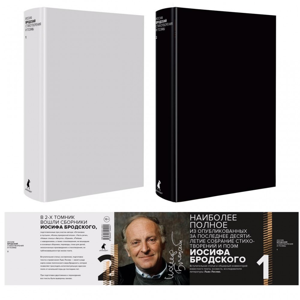 Бродский. Стихотворения и поэмы (комплект в 2-х книгах)В данный момент этот товар отсутствует в продаже. Возможно, у нас найдется аналогичный или похожий товар здесь. Настоящее издание – наиболее полное за последние 10 лет собрание стихотворений и поэм Иосифа Бродского. В его основу положены шесть поэтических сборников , подготовленных при непосредственном участии автора в американском издательстве «АРДИС» в 1970-е – 1990- е годы: «Остановка в пустыне» (1970), «Конец прекрасной эпохи» (1977), «Часть речи» (1977), «Новые стансы к Августе» (1983), «Урания» (1987), «Пейзаж с наводнением» (1996). В двухтомник вошли также переводы Иосифа Бродского из английской, американской, польской, литовской поэзии, стихи для детей, шуточные стихотворения, послания к друзья, неоконченные произведения и стихотворения, не публиковавшиеся при жизни автора. |