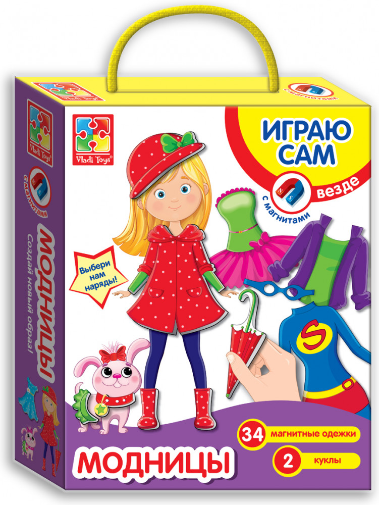 «Модницы» — магнитная игра-одевашка серии «Играю сам» — удобная и компактная. Это дополнительная минутка свободного времени для Вас и прекрасное поле для развития Вашего малыша.