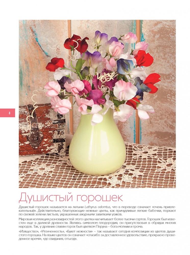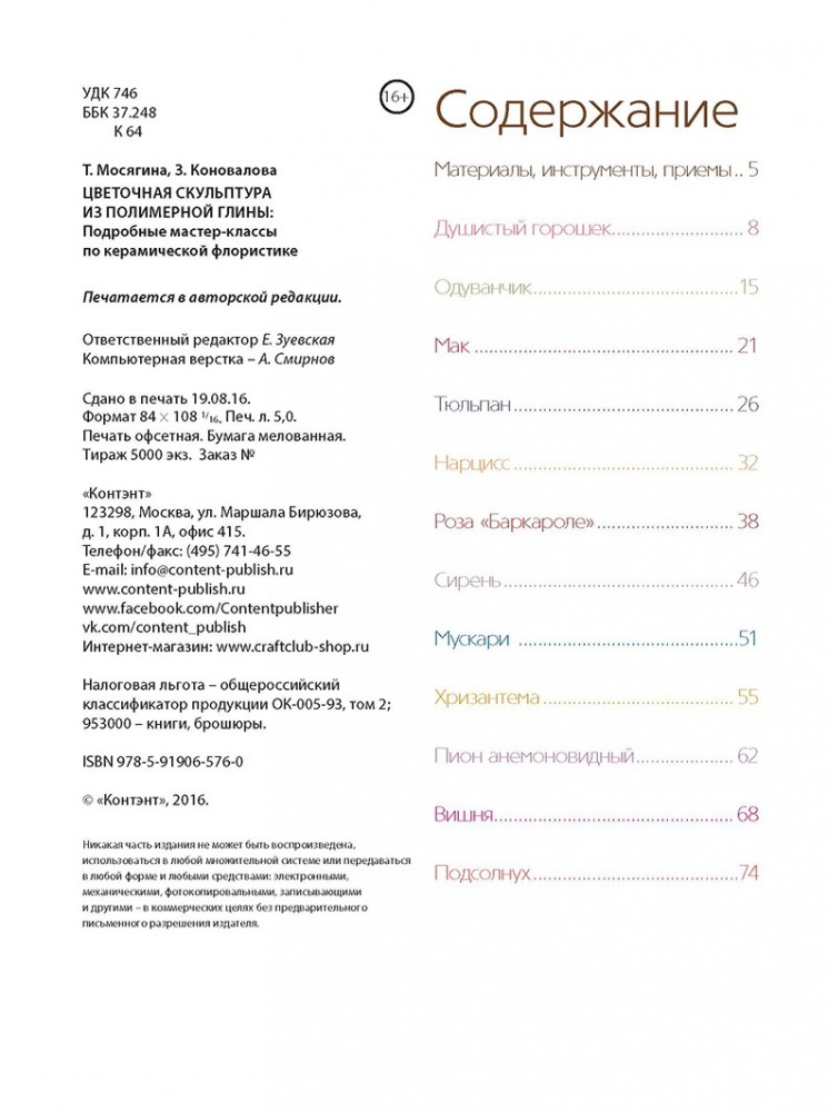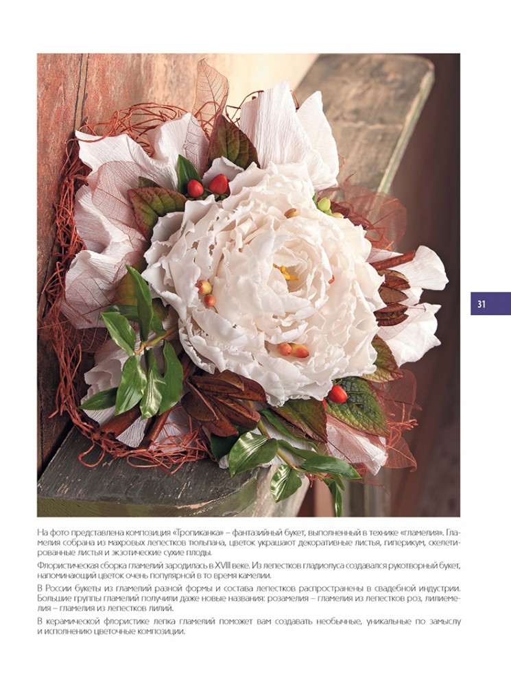 Цветочная скульптура из полимерной глиныТатьяна Мосягина, Зоя Коновалова В данный момент этот товар отсутствует в продаже. Возможно, у нас найдется аналогичный или похожий товар здесь. Серия: Craftclub Керамическая флористика — сравнительно молодое искусство, зародившееся около трех десятилетий назад в Восточной Азии и включающее в себя основы скульптуры, живописи и флористики. Как в любом художественном творчестве, здесь очень важно быть наблюдательным, подмечать мельчайшие детали и черпать вдохновение из природы. А что может быть для этих целей лучше живого цветка? Мастера школы керамической флористики «Фларанж» предлагают вам совершить путешествие в удивительный мир цветочной скульптуры. Пятнадцать подробных и прекрасно проиллюстрированных мастер-классов станут прекрасным началом на пути в мир керамической флористики! В этой книге представлены различные авторские методики создания цветов из полимерной глины, позволяющие достичь максимальной натуралистичности, передать природные особенности и фактуру живого цветка. Авторы расскажут вам о разных способах моделирования и конструирования цветов, сочетая которые вы сможете совершенствовать свое творение до бесконечности. |