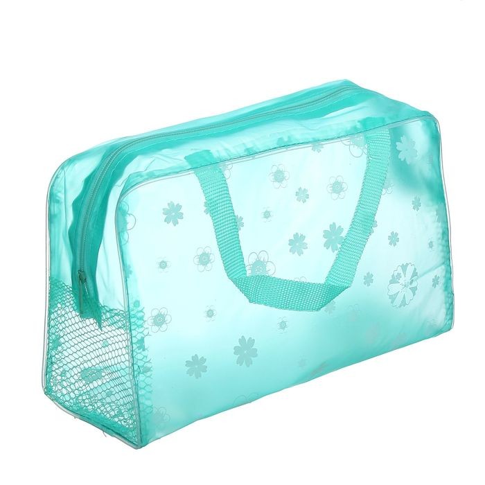 Косметичка банная на молнии «Цветы», 1 отдел, зелёный-25% +37 удобная для поездок маленький размер хлипкая конструкция боковая сетка