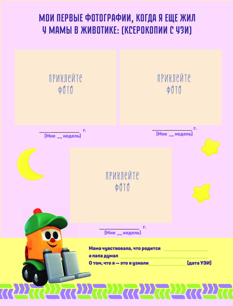 В данный момент этот товар отсутствует в продаже. Возможно, у нас найдется аналогичный или похожий товар здесь. Серия: Развиваемся с грузовичком Лёвой Одно из самых замечательных событий в семье — появление на свет вашего малыша. И хочется запомнить каждое мгновение жизни, проведенное рядом с ним.