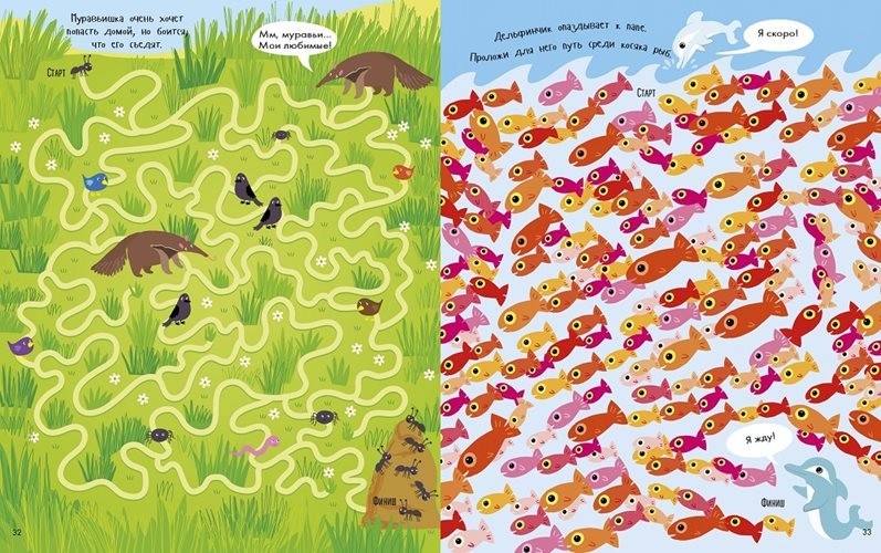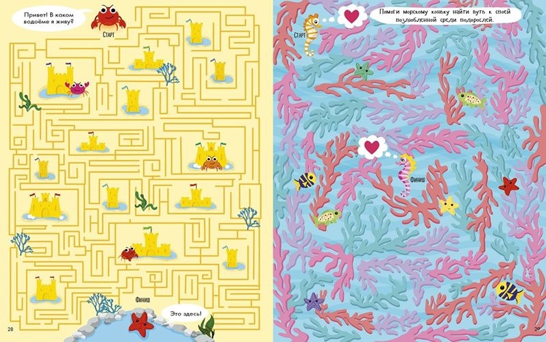 Интересные лабиринты. Некоторые 4-летней дочке сложноваты. Хорошо развивает пространственное мышление.