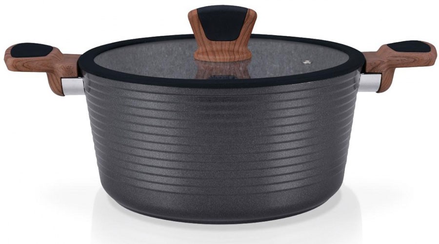 💳 Оплатить за товар можно при получении 🇰🇿 Есть бесплатная доставка по Казахстану от 1 дня 🎁 Копите бонусы с каждой покупки Серия: Diamond Grey Кастрюля изготовлена из литого алюминия с новым 5-ти слойным профессиональным покрытием EcoStone. Это устойчивое к царапинам и износу покрытие, усиленное вкраплениями каменных частиц. Усовершенствованная технология обеспечивает наилучшие эксплутационные свойства, прочность и долговечность. Толстое дно кастрюли рационально распределяет тепло, а удобные ручки из бакелита не нагреваются и не скользят в руках. Плотно прилегающая крышка надежно сохранит тепло внутри кастрюли. |