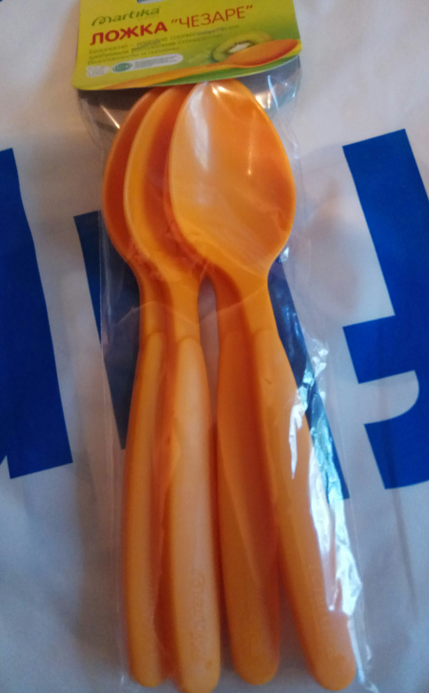 Ложки крепкие, пластик не пахнет, качество отличное. Оранжевого цвета пришли, в цвет другой посуды, за это спасибо оператору Флип.кз.