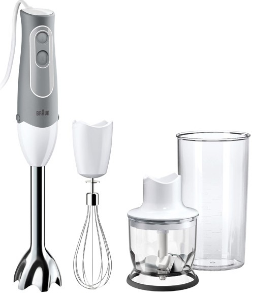 • Блендер Braun MQ 525 Omelette серии Multiquick 5 - ваш незаменимый помощник на кухне. В комплект входит мерная чаша 600 мл для смешивания супов или соусов, венчик из нержавеющей стали для взбивания яичных белков или сливок для суфле и десертов, а также маленький измельчитель 350 мл для небольших порций продуктов. Благодаря высокой мощности, блендер измельчает зелень или лук за 10-20 секунд, а сыр - за 30 секунд.