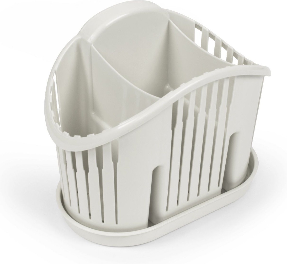 Удобная. Мне пришла светло серого цвета, очень приятный для глаз и под все подходит. Устойчивая, входит много ложек-вилок. Рекомендую.