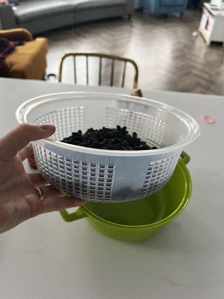 Не совсем удобно вытаскивать дуршлаг, так как у него нет ручек, а на чашке нет выемок, чтобы удобно взяться. А вообще вещь классная!