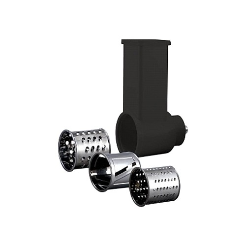 - В комплекте: 2 сетки из высококачественной стали (5 мм, 7 мм), металлический мясоприемник, пластиковый толкатель, нескользящие ножки, овощерезка (3 барабана), крупная терка, мелкая терка, терка для шинкования