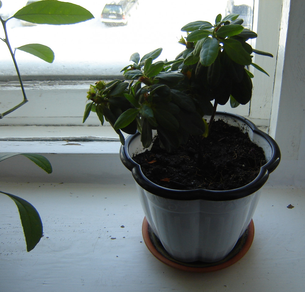 Саженец азалии в горшке "восторг". Горшок прочный, понравился, но поддон мелкий - это минус. Пришлось ставить свой поддон.
