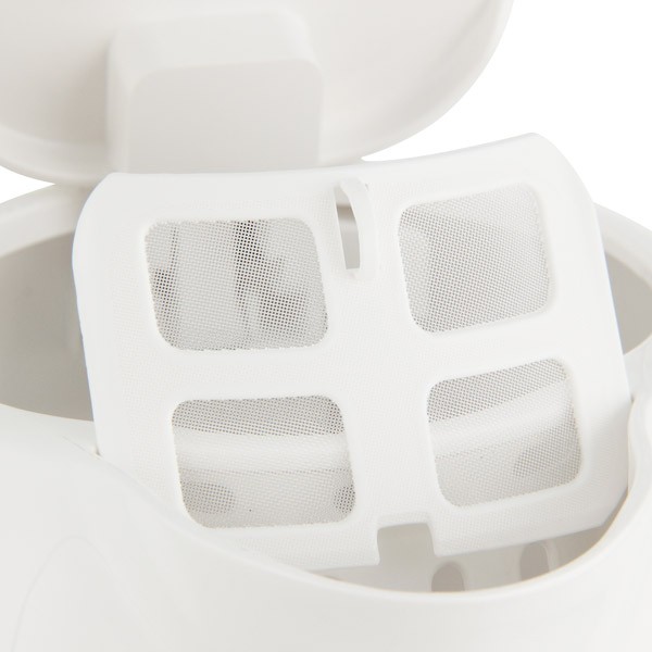 Прибор оснащён устойчивой опорой и удобной ручкой, которая хорошо лежит в ладони. Владелец легко может открыть крышку, чтобы заполнить чайник, или залить воду через носик.