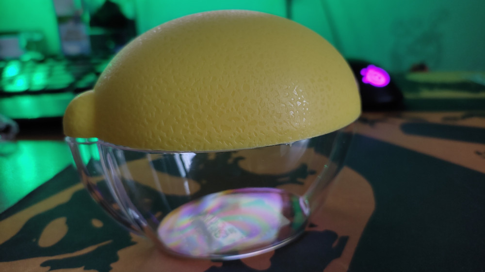 На столе с лимоном смотрится симпатично. Объем для большого лимона, пластик плотный, крышка закрывается плотно. Производителям спасибо!