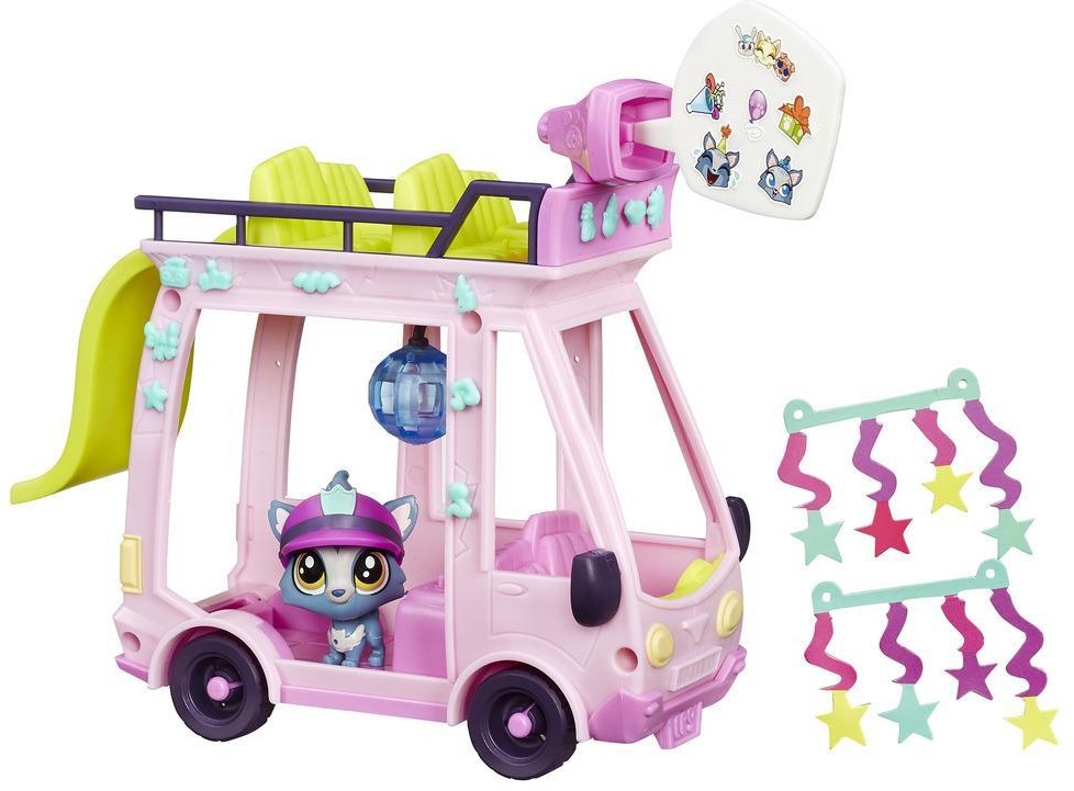 Для этого они арендовали автобус, на потолок которого присоединили настоящий дискошар. Через громкоговоритель, располагающийся на крыше, волчонок Barkley Woolfey (зверек входит в комплект) сможет распространять информацию о наступающей вечеринке. Специальная табличка с изображением всех составляющих замечательного праздника прикрепляется к громкоговорителю и имитирует объявление. На крыше автобуса располагается горка, которая поможет поднять уровень веселья на вечеринке LPS.