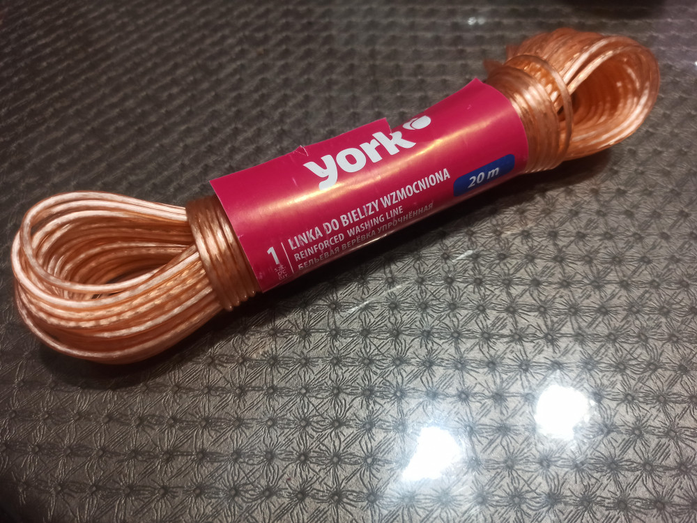 YORK Верёвка бельевая (20 м), упрочненная+53 прочная не провисает металлическая проволока легко завязывать