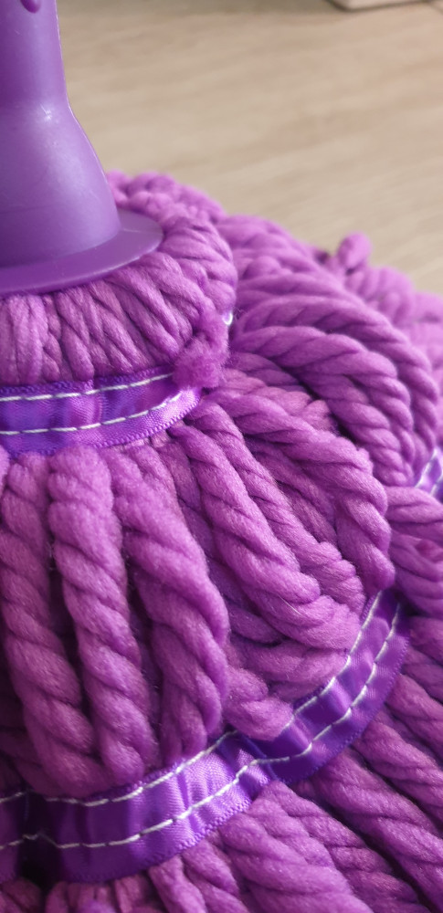 Первая сломалась, заказала новую. Пришла совершенно другая по качеству, да и цвет отличается. Сразу выбросила упаковку не посмотрела тот ли вообще был производитель. Нитки цепляются за ногти, за гвозди на плинтусах и вытягиваются нитки. Впитываемость примерно как у ваты, то есть когда опускаешь в воду швабра тяжелеет.