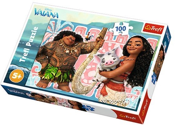 В данный момент этот товар отсутствует в продаже. Возможно, у нас найдется аналогичный или похожий товар здесь. Пазлы «Моана» включают в себя 100 красочных деталей из плотного картона. Соединив все элементы пазла, ребенок сможет очутиться в далеком прошлом, где по сюжету мультфильма очаровательная мулатка Моана вместе со своим другом полубогом Мауи отправляется на поиски сказочного острова. На картинке Моана стоит рядом с Мауи, держа на руках свинку Пуа. Яркая одежда Моаны, ее длинные вьющиеся черные волосы, восхитительная улыбка – все это обязательно увлечет вашего ребенка в сказочный мир приключений.