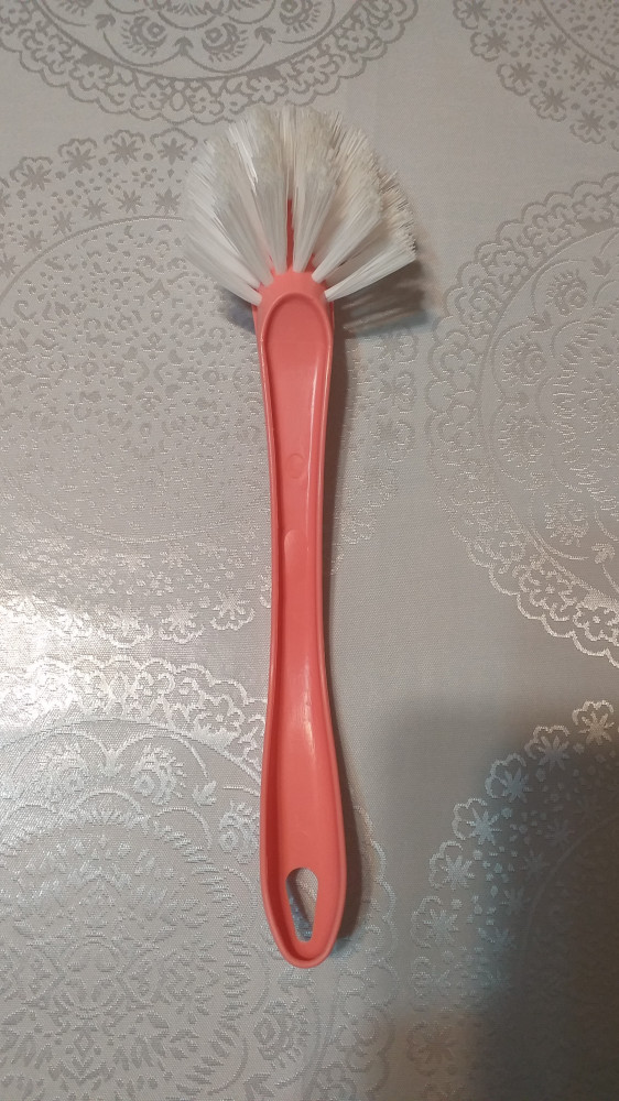 Хорошая щетка, служит верой и правдой уже 4 месяца, по прежнему справляется со своей работой. Форма щетки позволяет легко вымыть узкие стаканы, даже удобнее, чем ершик.