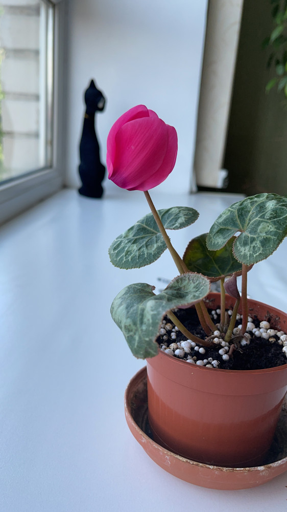 Взошли все. Выжил один. Спустя 11 месяцев расцвёл. Счастью нет предела. Это мой первый выживший цикламен.