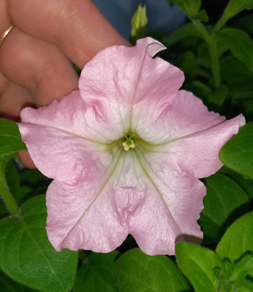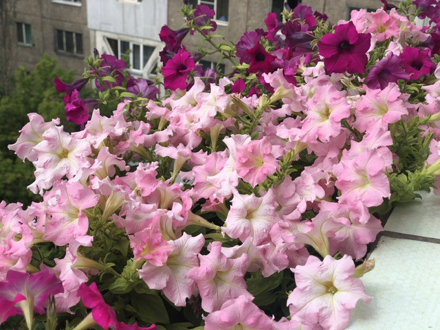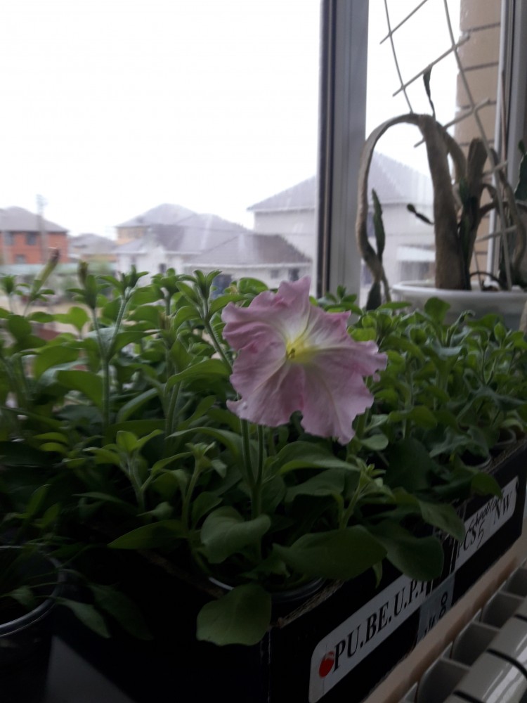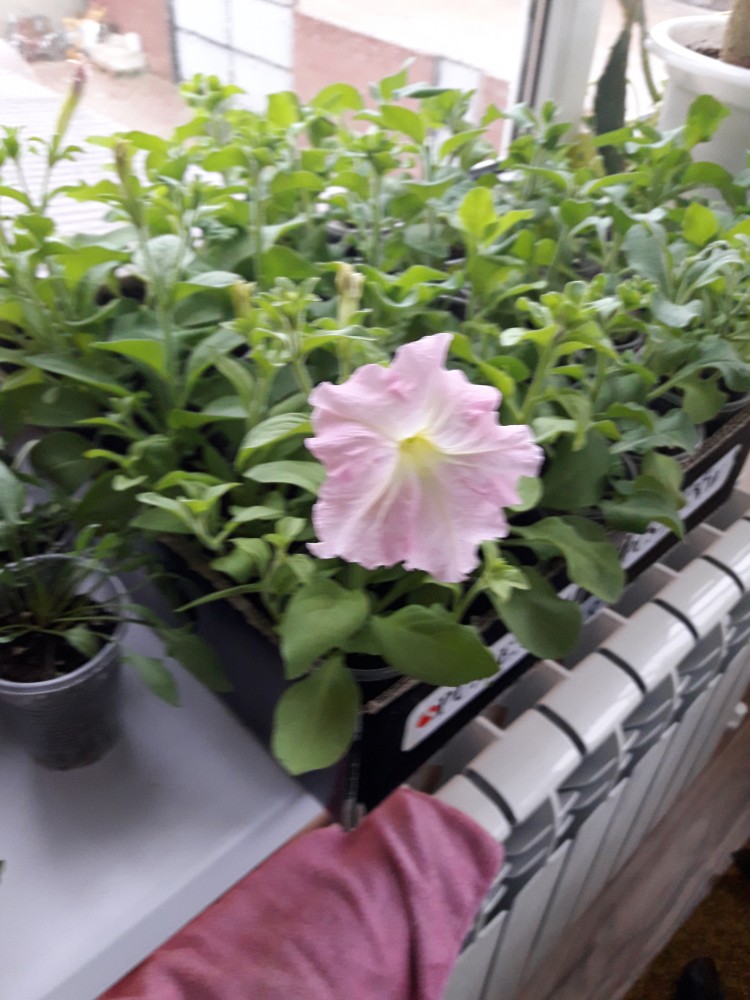 Розовый жемчуг в этом году взошел все же весь. 10/10. Сначала 8 штук, а потом еще 2 догнали. Как обычно одна из самых лучших по характеру петуний из всех 44 сортов (если не лучшая) - не капризная в рассаде и потом, отлично кустится, быстро разрастается и начинает цвести самой первой. Цветы очень крупные, красивейшей формы, в добавок, их еще и много. В общем, безусловная любимка. Сажала, сажаю и сажать буду. Попробую на маточник ее оставить, но не уверена, что с кустовой петунии получится черенки брать. С ампельниками в этом вопросе в разы проще - у них плети и отростки просто просятся на черенки, а у кустовушек цветонос из под каждого листа. Выкладываю фото уже этого года. В грунте еще пока не очень разрослась, но вот этот конкретный кустик меня восхитил. Последняя фотография на 19.05.2018г. - первая из зацветших петуний. Таки розовый жемчуг. Я даже не удивилась, в прошлом году тоже так было.