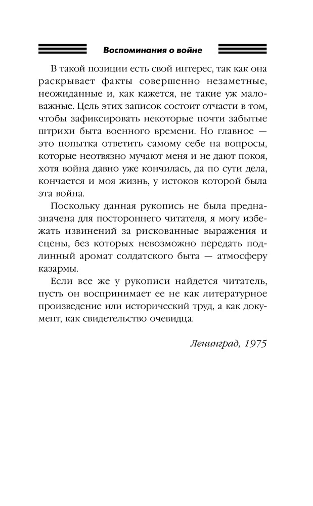 Рекомендовано к прочтению тем кому не нужны сказки об отношении к войне а нужна неприятная правда очевидца.