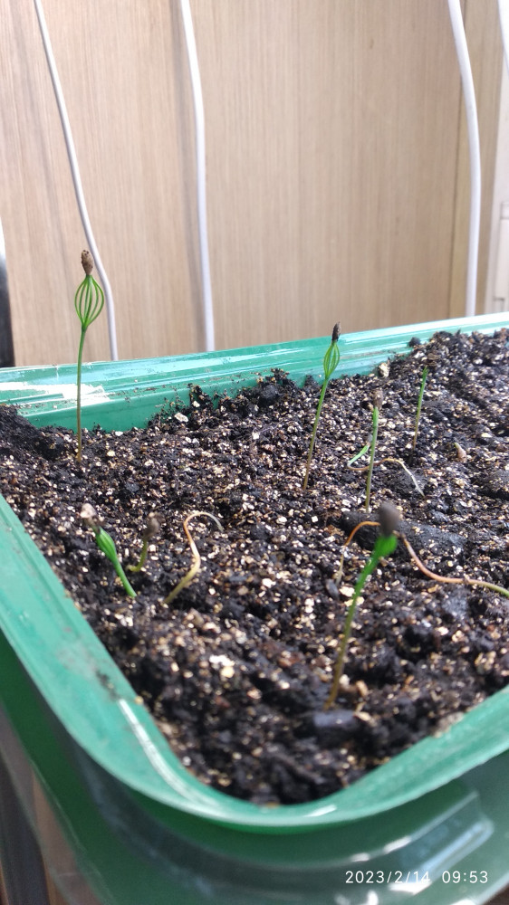 Отличные семена! Взошли в общем 10 штук. Правда, они видимо очень нежные и поливать следует очень аккуратно, часть в процессе ушла. Сейчас растут 3 сосны! Рада, и Рахмет!