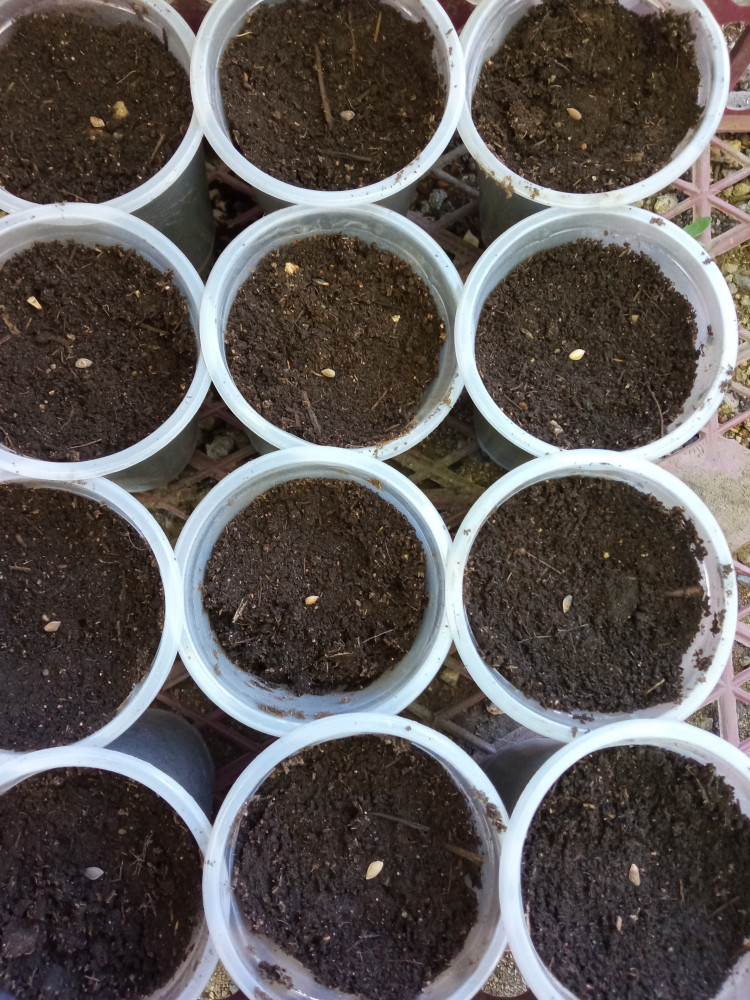 Всходят дружно и быстро. С семенами не заморачивалась. Рассыпала поверх увлажненной универсальной почвосмеси. Слегка вдавила семечки в землю. С помощью пульверизатора поддерживала влажность.