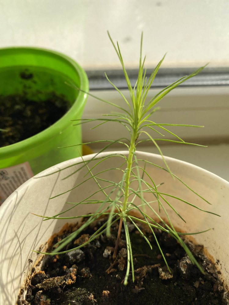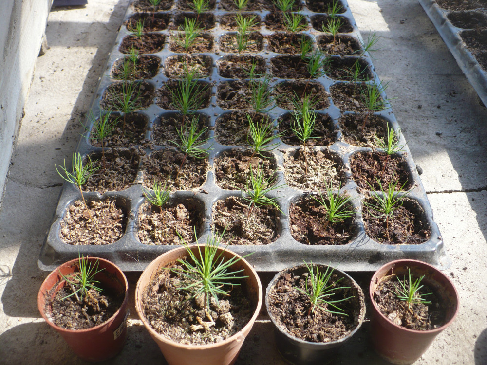 Подросли мои сосенки. Удивлена их неприхотливостью. Попробовала одну пересадить, причем, без особых нежностей. Принялась, сидит, как будто там всегда и сидела. Заказала грунт, буду рассаживать все. А вот ели и лиственница покапризнее. Ели взошли дружно и также дружно все высохли.Лиственница вся вытянулась, хотя сидит на солнечном месте.