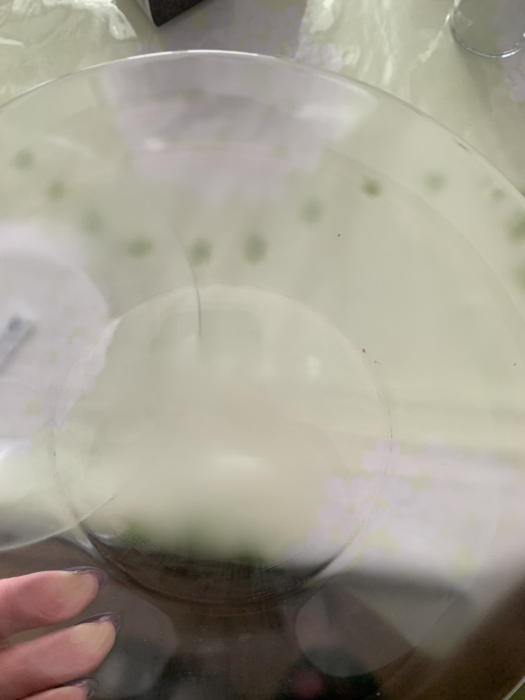 Заказывала шесть тарелок, из них две пришли с дефектом ( края тарелок косые), отказ от двух тарелок. Сами тарелки понравились.