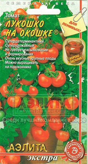В данный момент этот товар отсутствует в продаже. Возможно, у нас найдется аналогичный или похожий товар здесь. Серия: Аэлита экстра Превосходный скороспелый (от всходов до начала созревания 80-85 дней) сорт для открытого грунта и выращивания в домашних условиях, быстро отдаёт урожай. В кисти 8-10 плодов округлой формы, массой 20-30 г - выровненные, очень декоративные, отличных вкусовых качеств. Куст низкорослый (до 40 см) супердетерминантный. Растение само себя ограничивает в росте и не требует пасынкования и подвязки. Куст выдерживает большие нагрузки плодами. Рекомендуется для цельноплодного консервирования и потребления в свежем виде. Компания «АЭЛИТА» является эксклюзивным продавцом семян томата сорта «Лукошко на окошке»® на российском рынке семян.