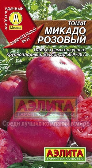 Аэлита Семена. Томат «Микадо розовый», 0,1 гВ данный момент этот товар отсутствует в продаже. Возможно, у нас найдется аналогичный или похожий товар здесь. Серия: Удачный урожай Популярный салатный сорт, один из самых вкусных. Рекомендуется для выращивания в теплицах. Среднеранний, от всходов до начала плодоношения 95-112 дней. Растения индетерминантные, высотой 1,8-2,2 м. Плоды крупные (число гнезд более 6), мясистые, ароматные. Средняя масса томата 300-360 г. При нормировании числа завязей в кисти можно увеличить вес плода до 500-700 г. Вкус свежих томатов замечательный. Сорт подходит для переработки на сок, кетчуп, лечо. Урожайность 6-8 кг/м2. |
