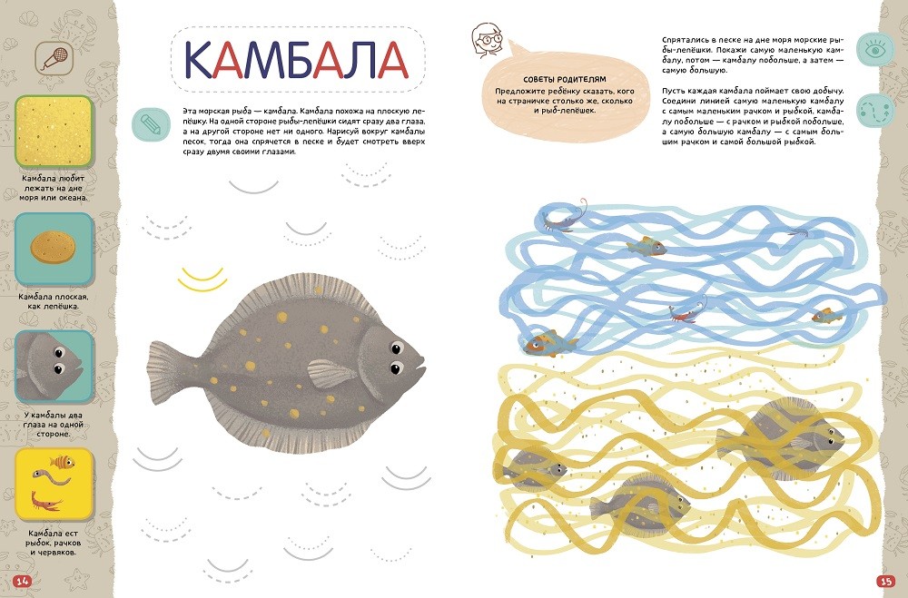 Суперская книжка, нам подарили, заказывали во флипе, поэтому оставляю тут отзыв! Все очень доступно для ребёнка, дочке 2,3 с удовольствием выполняет задания, и с интересом слушает про морских обитателей! Рисунки понятные. Отличная и качественная книжка.