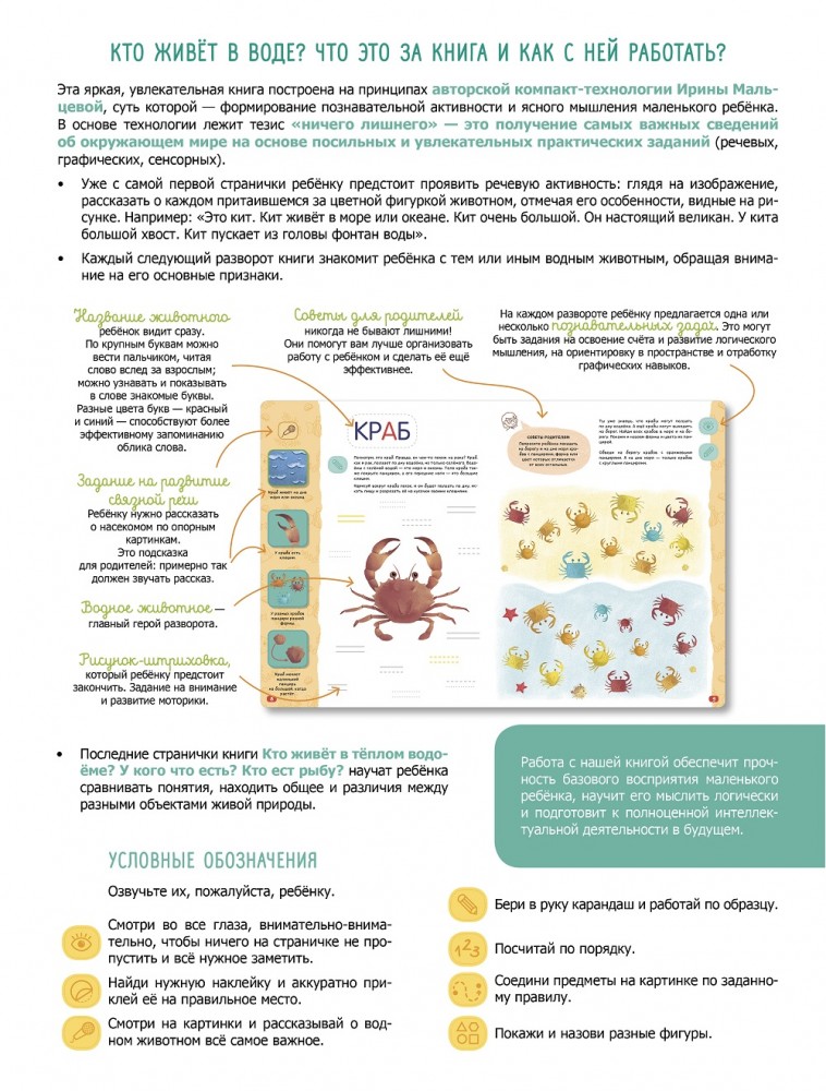 Кто живёт в воде? Комплексная тетрадь для игр и занятий. ФГОС ДОВ данный момент этот товар отсутствует в продаже. Возможно, у нас найдется аналогичный или похожий товар здесь. Серия: Компакт-технологии для одарённых малышей «Удивительная книга! Даже если родители вовсе не планирую заниматься с малышом ранним развитием, он сам займётся им, если возьмёт в руки эту книгу. Просто ему нужно чуть-чуть помочь». Евгения Карповская, Шеф-редактор «Счастливые Родители» Ирина Владимировна Мальцева – опытный действующий педагог-психолог, методист, разработчик образовательных программ и автор более сотни книг, в том числе популярной методики «Компакт-технологии». Теперь методика доступна и для самых маленьких детей! Наши комплексные тетради помогут малышам познакомиться с окружающим миром, а также в увлекательной игре развить свои способности, полезные навыки и необходимые умения. - Учимся рассуждать, развиваем связную речь. - Наблюдаем, развиваем внимание. - Учимся считать. - Учимся сравнивать, анализировать, обобщать, развиваем логическое мышление. - Штрихуем, обводим, рисуем – развиваем мелкую моторику. - Знакомимся с формами. - Используем наклейки для решения логическихзадач. |