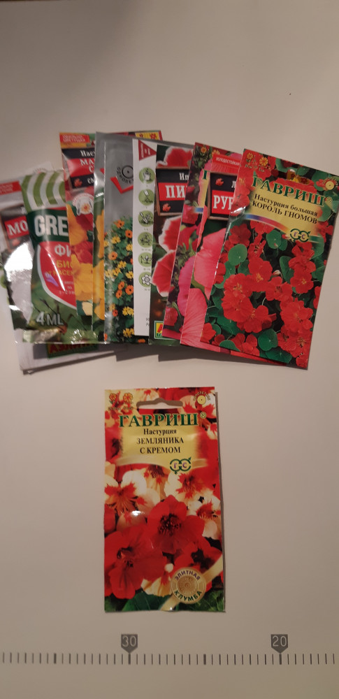 Гавриш Семена. Настурция «Земляника с кремом», 1 г+14 высокая всхожесть длительный срок мало семян низкая декоративность