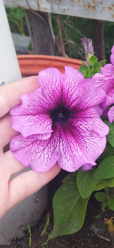 Это что то потрясающее. Шикарная петунья, очень крупные цветы, мощный стебель. Прям породистая, породистая
