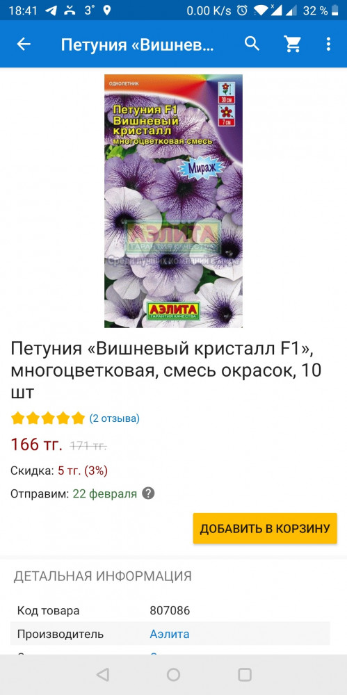 Добрый вечер. в заказе была выбрана петунья вишневый Кристал F1 многоцветковая смесь окрасок фиолетовые с белой окантовкой, а заказ пришел с другим окрасом, хотя названия одинаковые. Практика показывает: какие цвета на картинке такие цветы и всходят, весь интерес был в цвете.